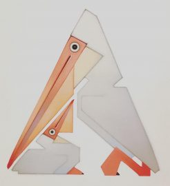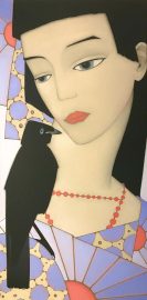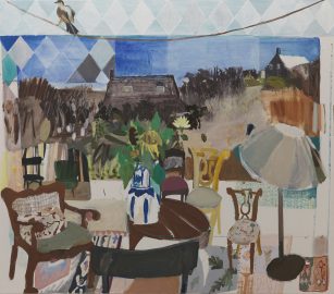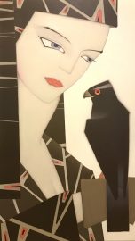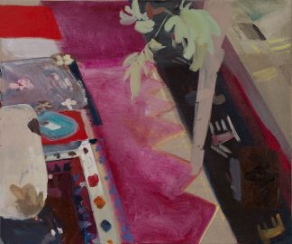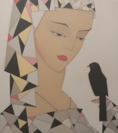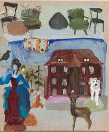 Ook bij Andrea Freckmann is er ondanks de directe herkenbaarheid van de voorstelling sprake van abstractie. Door het patroon van een Perzisch tapijt te isoleren of een kamer met tapijt en meubels van bovenaf weer te geven worden de vormen verzelfstandigd en abstracter. Vaak combineert ze zo’n meer abstract werk met een klein schilderij van een vogeltje of een ruimtelijk beeld van bijvoorbeeld een uil. Op de etalagewand van de galerie zal ze een voorstelling schilderen naast een klein ruimtelijk werk. In de tentoonstelling worden de schilderijen van beide kunstenaars gecombineerd in kabinet achtige ruimtes, wat resulteert in interessante combinaties van bijvoorbeeld een paradijsvogel van Peter Vos die naar een kamer met tapijt en meubels kijkt van Andrea Freckmann.