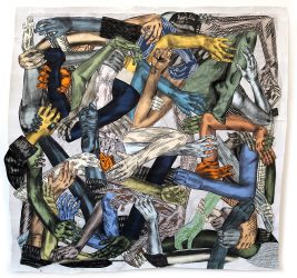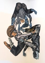 Susanna Inglada (1983) maakt een kleine installatie met deels driedimensionale tekeningen die in een hoek een dramatisch centrum heeft met tuimelende en vallende mensen. Ook hier legt ze de nadruk op de machtsverhoudingen tussen mensen die ze op een expressieve en theatrale wijze weergeeft.