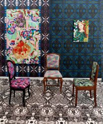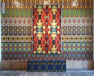 In de jaren tachtig maakte Christie van der Haak (1950) furore met schilderijen van madonna’s die ze gedeeltelijk overschilderde met ornamentale vormen. Het ornament is sindsdien een constante in haar werk. Rond 2003 stapt Christie van der Haak geleidelijk vanuit het schilderen over op het ontwerpen van textielpatronen. Eerst neemt ze fragmenten uit haar schilderijen daarna gaat ze specifiek patronen ontwerpen die ze toepast in autonome kunstwerken als wandkleden en tapijten maar ook als meubelstof en wandbekleding. Het ontwerp bestaat uit een tekening op papier op A4 formaat die in de computer naar boven en opzij wordt gespiegeld en ingevuld met kleur. Eenzelfde motief kan door het wijzigen van de kleuren in je beleving veranderen van rustig naar sterk expressief.