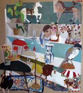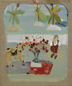 Andrea Freckmann (1970) schept in haar schilderijen een wereld waarin werkelijkheid en theater in elkaar overvloeien. In haar nieuwste werk richt ze zich specifiek op de Commedia dell’Arte, de satirische theatervorm die in het 16e eeuwse Italië tot ontwikkeling kwam. Hierin worden met vaststaande personages maatschappelijke verhoudingen en de drijfveren van mensen blootgelegd, waarbij vaak hiërarchische verhoudingen worden omgekeerd zoals de knecht die slimmer is dan zijn meester. Hoewel de theatervorm historisch is kunnen de types en intriges moeiteloos naar onze huidige samenleving worden vertaald. Andrea Freckmann is vervolgens gaan onderzoeken hoe de mechanismen uit het theater zich verhouden tot de schilderkunst.