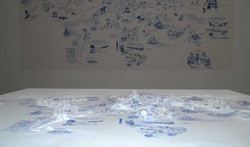 Natasja van Kampen (1970) verenigt die twee uitersten in haar tekening Het Paradijs als Restruimte, een driedimensionale wereldkaart waarop ze de plekken van alle oorlogen weergeeft. De plaats waar geen strijd heeft gewoed is de locatie van het paradijs. De ernst en omvang van de oorlog bepaalt de hoogte op de kaart, waardoor er in Europa door de Eerste Wereldoorlog een berg met Mount Everest achtige hoogte is ontstaan en in het roerige Midden Oosten een met de proporties van de Matterhorn.