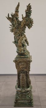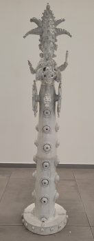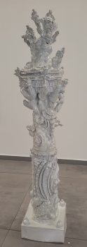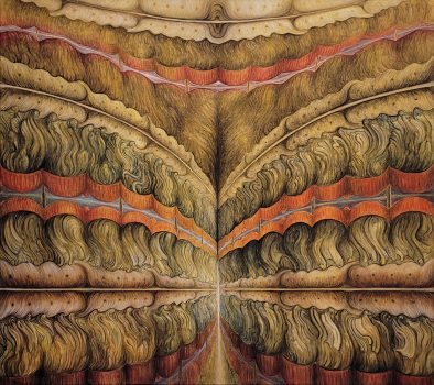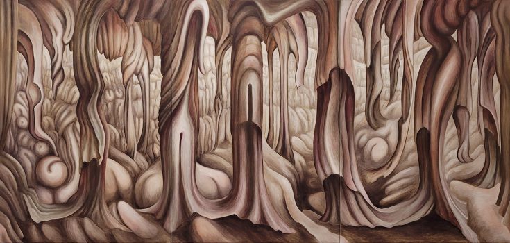 Elisabeth Trenkwalder toont een reeks schilderijen waarin ze uitgaat van bomen die je van onder af zijn weergegeven en zich tegen de hemel aftekenen. Door ze te spiegelen en te verdubbelen ontstaan patronen waarin je naast de bomen ook overkoepelende vormen als gezichten kunt herkennen. Elmar en Elisabeth Trenkwalder werken al lange tijd samen waarin ze elkaars kunst over en weer beïnvloeden en aanvullen. In de tentoonstelling is ook een gemeenschappelijk schilderij te zien van een grotachtige ruimte waarin de zuilen door Elmar werden getekend en de achterliggende zaal door Elisabeth Trenkwalder werd geschilderd. Naast de sculpturen zijn er ook tekeningen van Elmar Trenkwalder te zien die een inzicht geven in het ontstaan van zijn beelden en motieven.