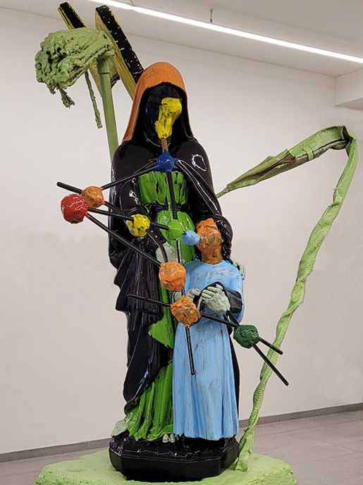 David Bade shows spatial work based on sculptures of saints, Jordan Herregraven’s sculptures appear to be mythical creatures from a forgotten world.