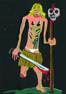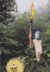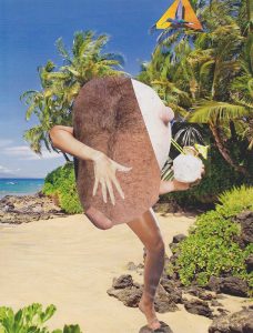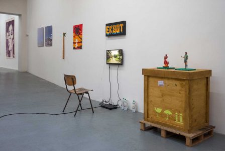 Shortly thereafter he discovered the account by the 16th-century German adventurer Hans Staden about his stay with a tribe of cannibals in Brazil. The explorer describes this new world and in doing so also clearly defines himself as a European. Brokof applies this perspective to the former German Democratic Republic citizen who has to come to terms with the capitalist West. This is the point of departure for collages, works on paper and installations in which exoticism and kannibalism are presented in a curious mix of German and Brazilian motives. Together with Flemish theater director and writer Joachim Robbrecht Jan Brokof started Hans Staden TV, an ongoing video project. In present day Sao Paolo they act out the story of the 16th Century adventurer Hans Staden and create an archetypical tourist/ousider persona as well, which creates surreal scenes caused by the clash of cultures and of past and present.