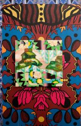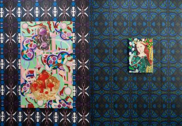 At the end of the 1980s, Christie van der Haak (1950) made a name for herself with paintings of madonnas whose faces she partially covered with patterns. Since then, ornament has been a constant factor in her art. During the past fifteen years she gradually crossed over from painting to designing patterns for tapestries, wallpanels and upholstery fabrics. The designs usually consist of floral shapes that are mirrored and doubled, resulting in symmetrical shapes that are reminiscent of Art Nouveau and Art Deco patterns. In the gallery Christie van der Haak will create an installation using wallpaper, tapestries, epoxy resin panels and carpets. By alternately enlarging and reducing the scale of the patterns on the wallpaper and the panels, a multi layered overall picture will emerge which the spectator has to zoom in and out on.