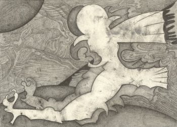 Artists in focus are Paul van der Eerden (1954) and Romy Muijrers (1990), showing works from their SUITE series. They started this collaborative project in 2018. One of the artists begins by making an initial sketch or stain on the paper, upon which the other artist elaborates. This process continues over several sessions until the drawing is complete. While Van der Eerden works mainly with strong contrasts and clear lines, Muijrers’ approach is more detailed and softer by nature. Although the two hands can be initially distinguished, they gradually converge in a symbiosis in which the viewer appears to be dealing with a single artist that continually evolves. The images vary from landscapes, plants, and human figures to texts, some of which have been depicted in great detail, while others are simpler and have a more pronounced shape. The texts have been derived from poetry and literature by writers such as Li Po, Han Shan, or William Blake, but also from pop songs by Joni Mitchell, The Byrds, or Radiohead.