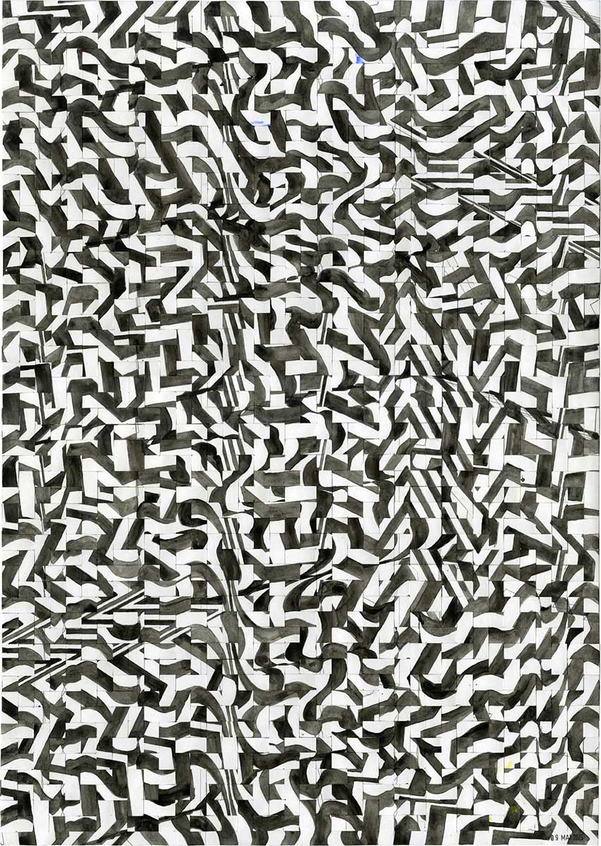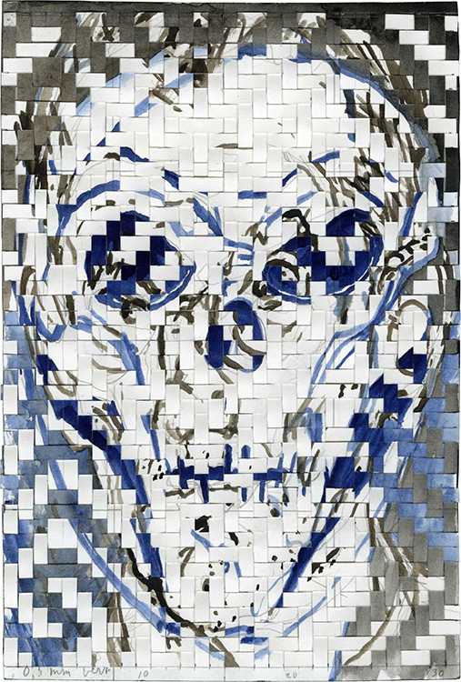 Over the past years Henri Jacobs (1957) has been fascinated by the surface of the drawing. Besides depicting folds and furrows in the image, he also physically manipulates the paper itself. He cuts two drawings into strips and then interweaves them into a single surface again, making the front and back of the sheet equally important.