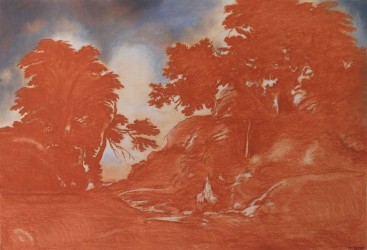 In the 1990s Nour-Eddine Jarram (1956) became known for paintings in which he mixes works by Dutch masters with themes from Islamic visual culture. He replaced the heads of the physicians from Rembrandt’s Anatomy Lesson with tulips, for example. Over the past year, he has taken 17th-century Dutch landscapes as a point of departure for his pastel drawings.