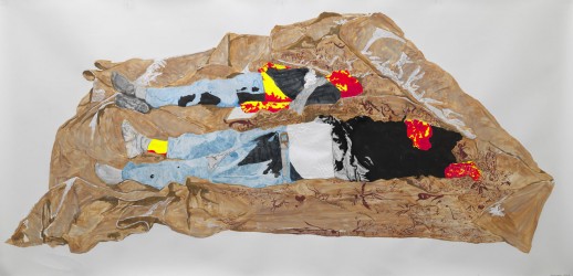 In his work Taiwanese/Canadian artist Ed Pien’s (1958) continues the tradition of the depiction of hell. His brush drawings are inhabited by monsters, demons and spirits, all drawn in elegant, festering lines. Justin Wijers (1981) shows the consequences of evil; he draws victims of violent crimes and fills their outlines in with texts and miniatures in exquisite colors. This seduces the spectator to look at the image intensively up to the point that the complete outline of the body emerges and you suddenly are aware of what exactly you are looking at. In this way, Justin Wijers confronts us with a raw reality that we are faced with through the media every day, but usually close ourselves off from.