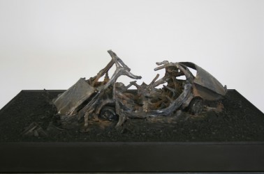 Anne Wenzel (1972) also refers to topical matters such as terrorism and warfare, but in her work people are absent. She makes small ceramic car wrecks, torn apart by explosives, witnesses in miniature of terrorist violence.