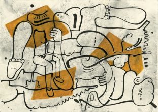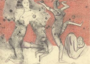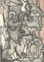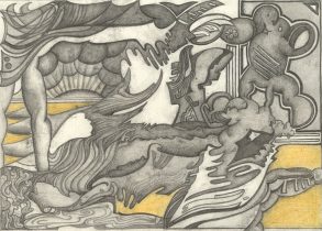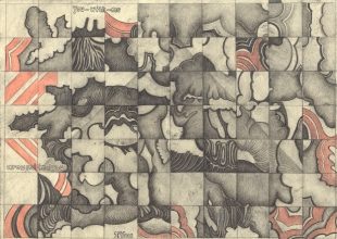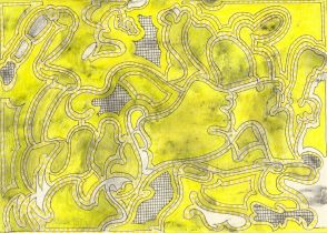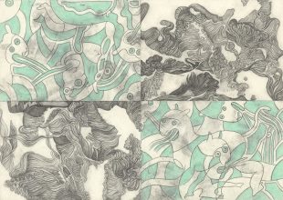 Paul van der Eerden (1954) and Romy Muijrers (1990) started their collaborative project SUITE in 2018, for which they produce collective drawings. One starts by making a first sketch or staining the paper, after which the other elaborates on this during several sessions until the drawing is completed. While Van der Eerden mainly works with strong, clear lines and contrasts, Muijrers’ approach is more detailed and softer by nature. The two hands can still be distinguished at first converging gradually into a symbiosis where you seem to be dealing with a single artist who is continually evolving.