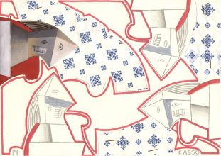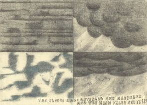 The images vary from landscapes, plants, and human figures to texts, some of which have been depicted in great detail, while others are simpler and have a more pronounced shape. The texts have been derived from poetry and literature by writers such as Li Po, Han Shan, or William Blake, but also from pop songs by Joni Mitchell, The Byrds, or Radiohead. In the exhibition all SUITE drawings to date are shown, combined with a mural painting and a display case with archival material, including a number of failed SUITE drawings as well.