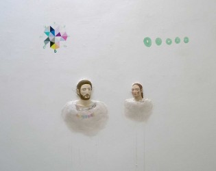 Femmy Otten (1981) depicts faces of people from her direct environment but also uses pictures and portraits from art history. They are painted with great attention and care, reminding of Madonna’s from the early Renaissance with their disarming delicacy and purity. After having painted the portraits Femmy Otten often cuts them out of the larger canvas, turning them into isolated patches that can be combined. Since a few years she also carves portraits in wood, that are then painted and fixed to the wall with plaster as a bas relief. As a counterpoint, she paints geometric shapes on the same wall that charge up the faces and makes them more poignant. She thus assembles motifs and forms like a collector to whom the treasures of painting, however different in character, are equally valuable and dear.