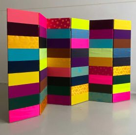 Colour is the all-encompassing subject in the work of Fransje Killaars (1959). In the 1980s, 1990s, she used fluorescent colours in her paintings that to the eye left an afterimage on the white wall. Colour thus stepped outside the frame of the painting into space. Triggered by this phenomenon, she started exploring how she could leave the flat surface of the canvas and extend her work into another medium. In India, she discovered the possibilities of textiles at a traditional weaving mill. From then on, Fransje Killaars started making installations with textiles, giving colour a haven where art touches upon design, architecture and fashion.
