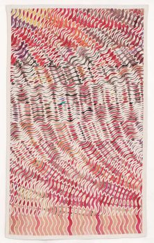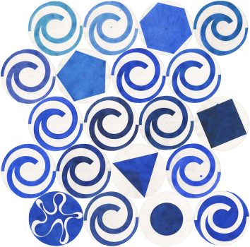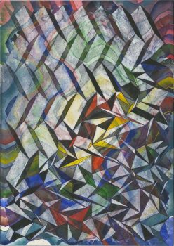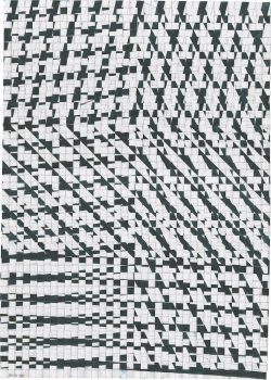 Grond, zand, aarde, akkers, het oppervlak erodeert, verdroogt, scheurt, plooit, verzakt, verarmt, is uitgeput en moe. Vanuit dit besef van het oppervlak maakt Jacobs papieren vlechtwerken van twee of meer vellen gekleurd, getekend of bedrukt papier.