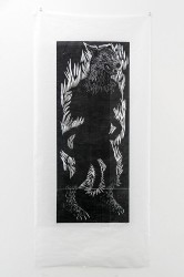 Bij Jos de l’Orme (1964) is de natuur ook steeds het leidende motief, in expressieve houtsneden geeft hij bossen, landschappen en dieren weer. Onlangs maakte hij een manshoge houtsnede van een weerwolf, de mythische figuur waarin mens en dier samenvloeien. Hoofdwerk in de expositie is een houtdruk van een donker bos vol kale bomen die zware slagschaduwen op de grond werpen en grillig afsteken tegen een wervelende wolkenlucht. Door de heftige beweging werkt de voorstelling sterk expressief alsof het de emoties van de maker weerspiegelt.