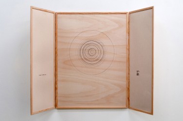 Elsbeth Ciesluk (1986) maakte een drieluik waarin ze de natuur oproept in haar directe leefomgeving. Op het middenpaneel tekende ze een patroon van concentrische cirkels opgebouwd uit de omtrekken van alle ronde voorwerpen die ze in haar huis aantrof. Het beeld dat zo ontstaat verwijst naar de jaarringen van een doorgesneden boom maar ook naar een middeleeuwse weergave van de kosmos. De centrale voorstelling vulde ze aan met sterk beeldende teksten gebaseerd op haar dromen. De frêle typemachine letters waarmee ze zijn geschreven vergroten hun poëtische zeggingskracht.