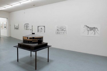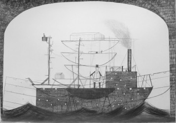 Dirk Zoete (1969) geeft in zijn tekeningen een bühne weer waarop bouwwerken of schepen staan. Deze constructies hebben verschillende etages waarop huizen, voorwerpen en mensen zijn aangebracht die samen deel lijken uit te maken van een systeem. De menselijke figuren zijn rudimentair weergegeven als poppen of grote vogelverschrikkers die vanaf een uitkijkpost de wereld in kijken. De architectonische inventies en de arkachtige schepen wekken de indruk reusachtig te zijn maar krijgen door de toneelachtige setting tegelijk een aandoenlijke verkleining. Soms is de bühne ook expliciet, zoals in The Wild Bunch waarin cowboys op houten paarden zijn gezet tegen een achtergrond van een Amerikaans woestijnlandschap. Het systeem van huizen, schoepenraderen, schuren, mensen en dieren dat in de meeste werken aanwezig is wijst op een verlangen naar een eenvoudige, samenhangende wereld waarin de mens zichzelf kan onderhouden. Dirk Zoete werkte dat gegeven ook uit in een maquette van een rond huis dat tegelijk atelier, woning en boerderij is, een ideale plek waarin de kunstenaar autarkisch kan leven.