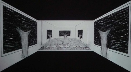 Robbie Cornelissen (1954) staat bekend om zijn tekeningen op groot formaat waarin hij de toeschouwer laat dwalen door complexe architectonische ruimtes. Daarnaast onderzoekt hij ook de grenzen van het medium tekenen. Het afgelopen jaar werkte hij samen met Kees Went aan een nieuwe animatiefilm: The Black Room 2014. Het werk bestaat uit zo’n zestig animaties op basis van houtskooltekeningen op papier, waarin de thema’s perspectief en ruimte, abstractie en figuratie en de overgang van twee- naar driedimensionaal worden onderzocht.