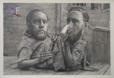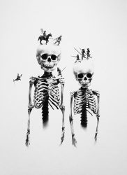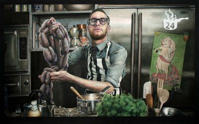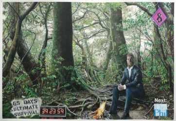 In het werk van de drie kunstenaars komen vragen over de zin en betekenis van het leven aan bod. Kim Hospers (1982) snijdt het streven naar roem en onsterfelijkheid aan door zichzelf te portretteren als hoofdrolspeler in reality- en lifestile tv-programma’s. Zo figureert hij als worstmakende kok in een kookprogramma of plaatst zich gekleed in net pak in een bos waar hij een survival opdracht moet uitvoeren. De vluchtigheid en terloopsheid van de tv formats staat in schril contrast met de tekeningen die in een tijdrovend proces van maanden tot in het kleinste detail zijn uitgewerkt. Justin Wijers (1981) uit zijn verbijstering en machteloosheid tegenover oorlogs- en misdaadgeweld. Hij levert geen direct commentaar op de gruwelijkheden maar tekent en schildert de slachtoffers op een zorgvuldige, registrerende manier. Met aantrekkelijke kleuren, verborgen details en teksten verleidt hij de toeschouwer om de heftige beelden van dichtbij te bekijken.