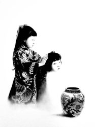 Seekee Chung (1979) maakt zeer gedetailleerde pasteltekeningen van geesten en demonen en verwijst daarmee naar een leven na de dood of een parallele wereld van geesten. In Japan maakte Seekee Chung kennis met oude volksvertellingen over de zogenoemde Yokai, plaaggeesten die de levenden komen belagen. Een kat die bij leven slecht werd behandeld kan terugkeren als Nekomata, een kattengeest met twee staarten die zijn meester komt sarren. Een anders verschijningsvorm zijn de Rokurokubi, geesten van vrouwen of meisjes bij wie het hoofd los van het lichaam komt en vrij gaat zweven.