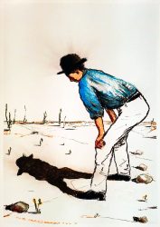 Ronald Versloot (1964) maakte een serie nieuwe pastels waarin hij het beeld met een minimum aan lijnen oproept. In Dip In creëert hij een draaiende beweging vanuit de cirkels waar de duiker het water zal raken. De ronde takkenhaag boven en de blauwe golven beneden in het beeld versterken dit.