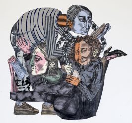 Susanna Inglada (1983) toont naast kleinere tekeningen een groot collage werk: Turning the Tables waarin twee vrouwen lezen en de derde schrijft met de vlecht van de vrouw boven haar. Door te lezen en te schrijven vergaren ze kennis en brengen ze de machtsverhouding tussen man en vrouw in balans.